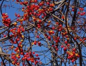 Don’t be tempted to use vines with bright berries unless you know what the plants are. Two invasive plants in Newton are especially problematic because birds spread their seeds: Asiatic Bittersweet and multiflora rose.