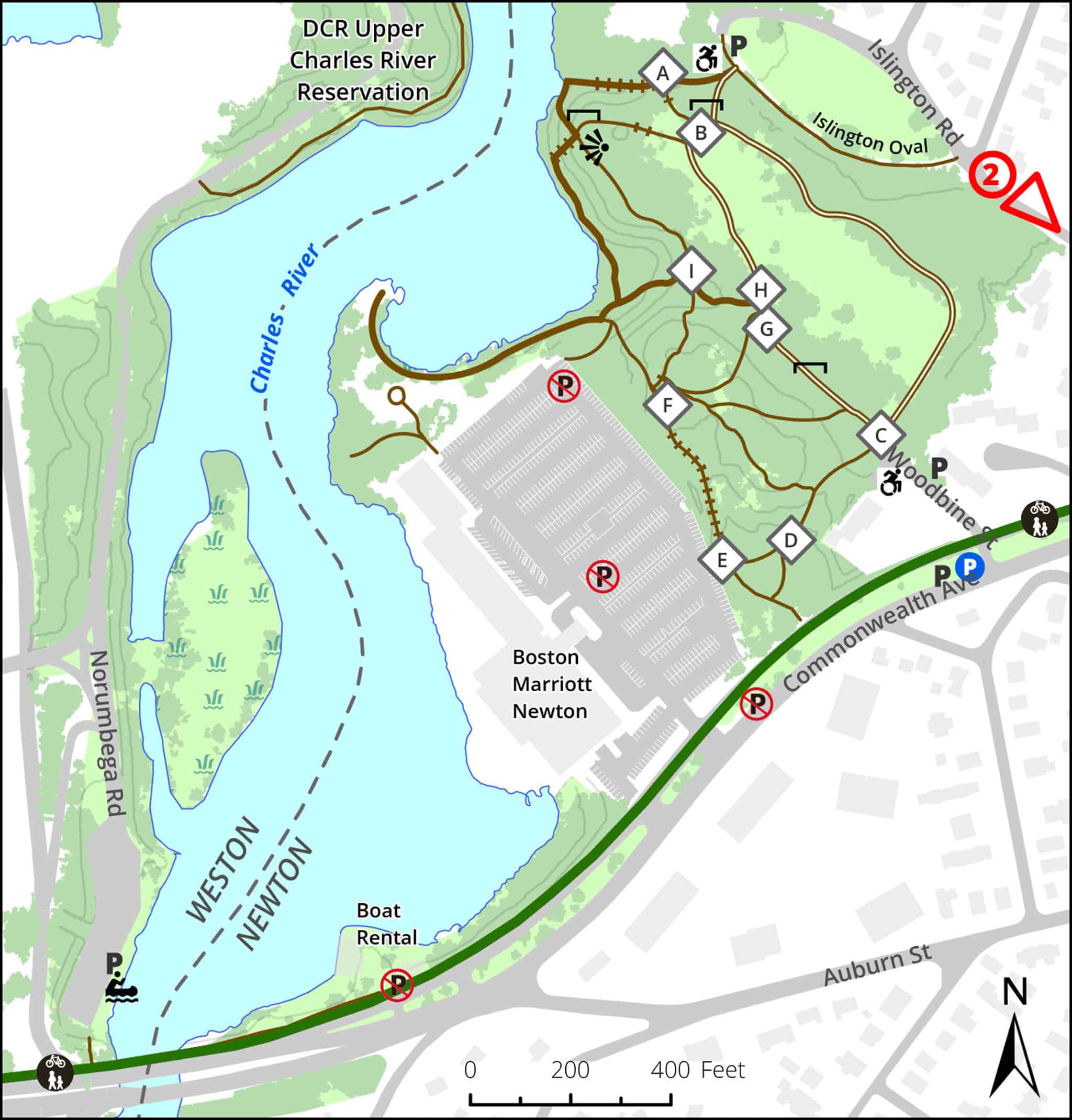 Connects to: Auburndale Park via a short walk on Commonwealth Avenue or Islington Road